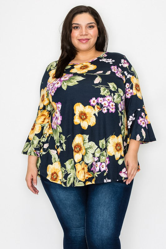 Beautiful Navy Yellow Flower Floral Shirt Top