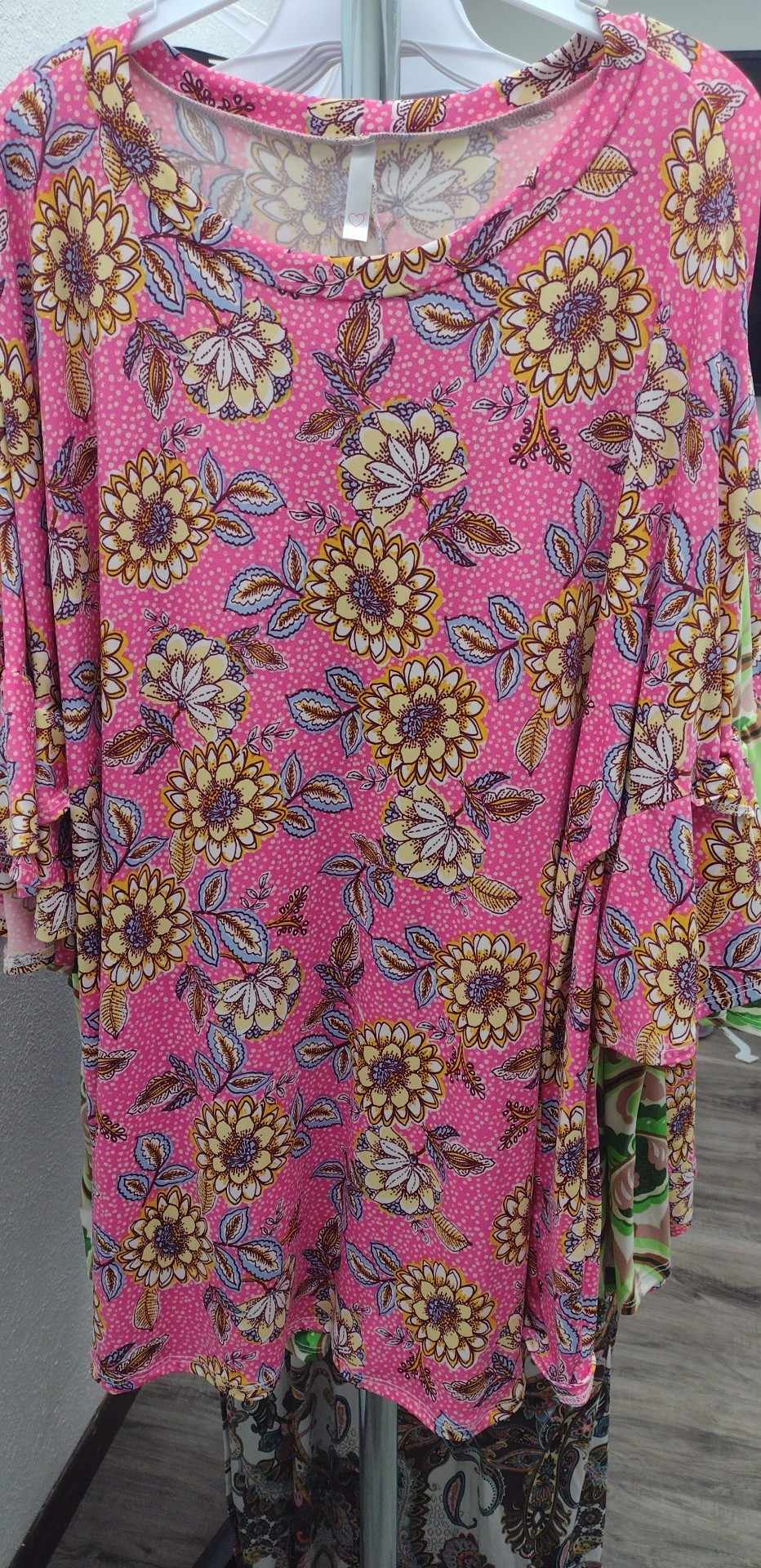 Pink Yellow Green Swirl Tie Dye-y Shirt Top
