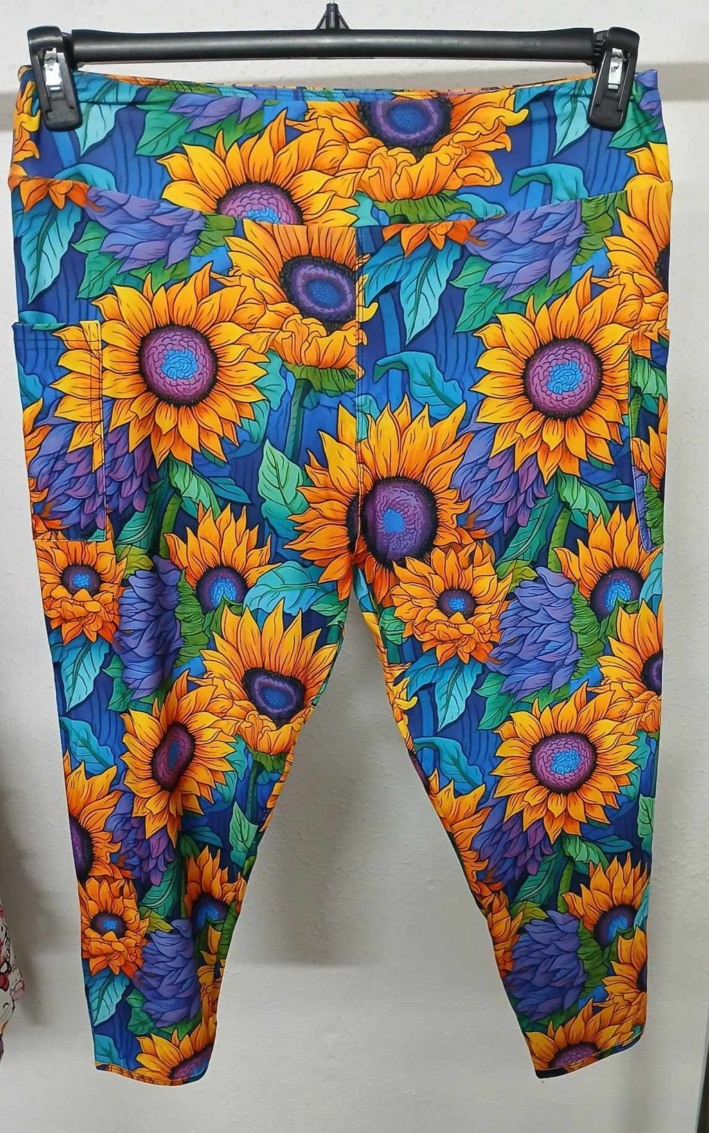 Electric Purple Sunflower Criss Cross Back Capri Capris