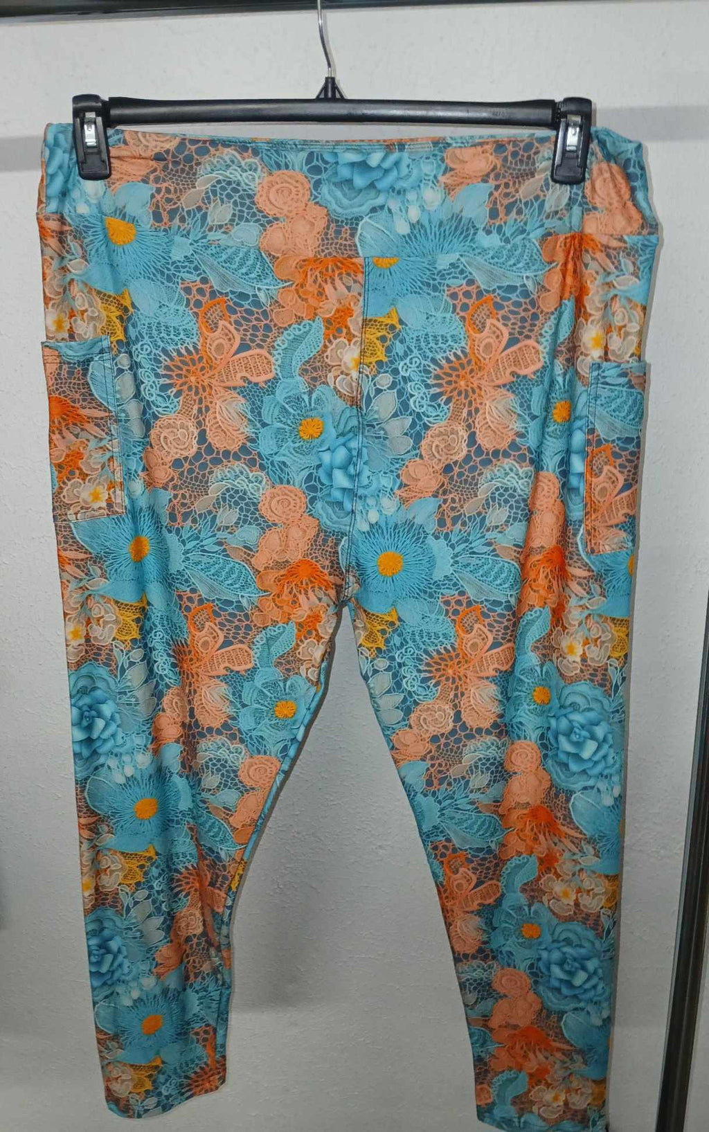 Light Aqua Peachy Lacey Look Full Length Leggings w Pockets