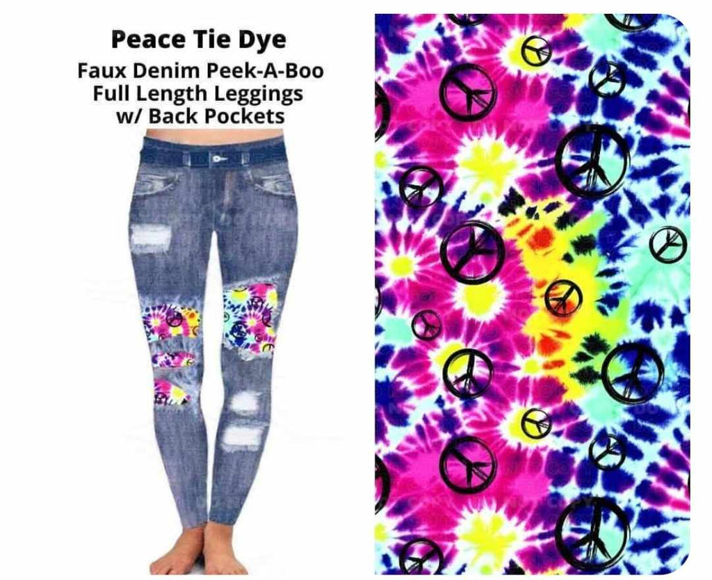 Denim Peace Tie Dye Patch Full Length Leggings Legging