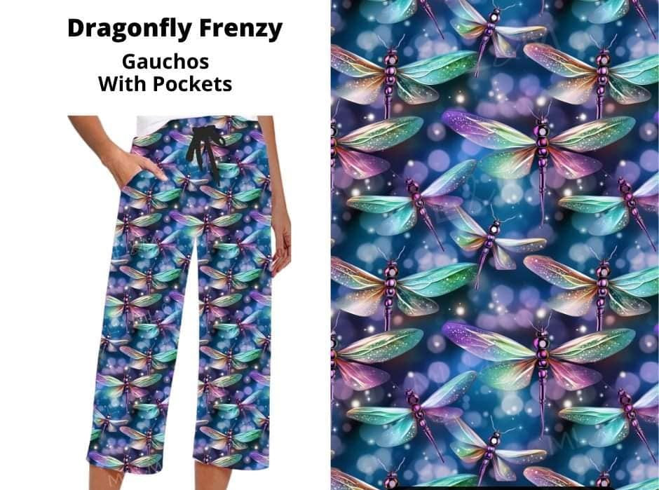 Dragonfly Frenzy Capri Gaucho Gauchos w Pockets
