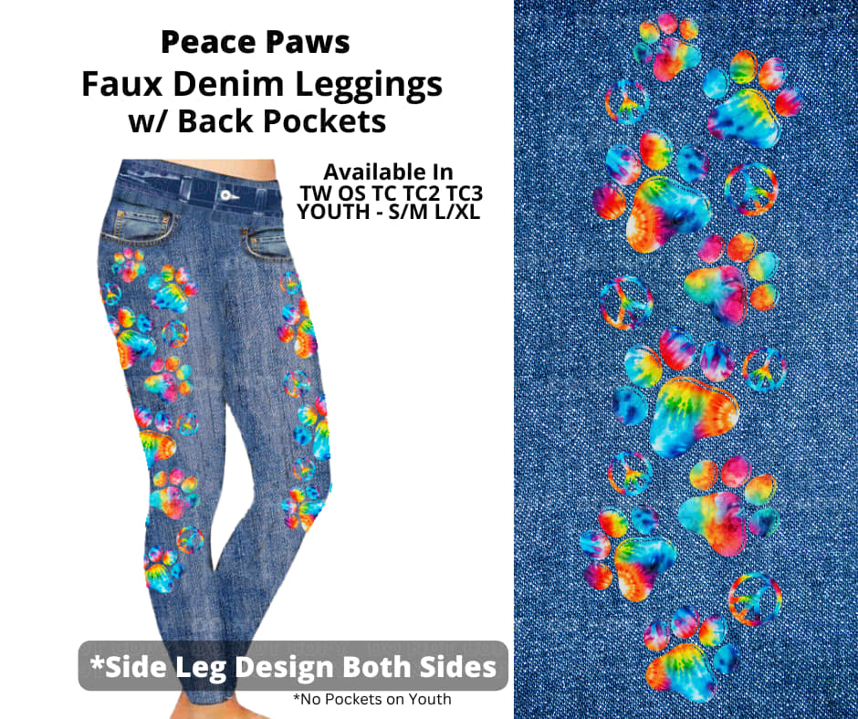 Denim Tie Dye Peace Paws Puppy Feet Print Leggings Legging