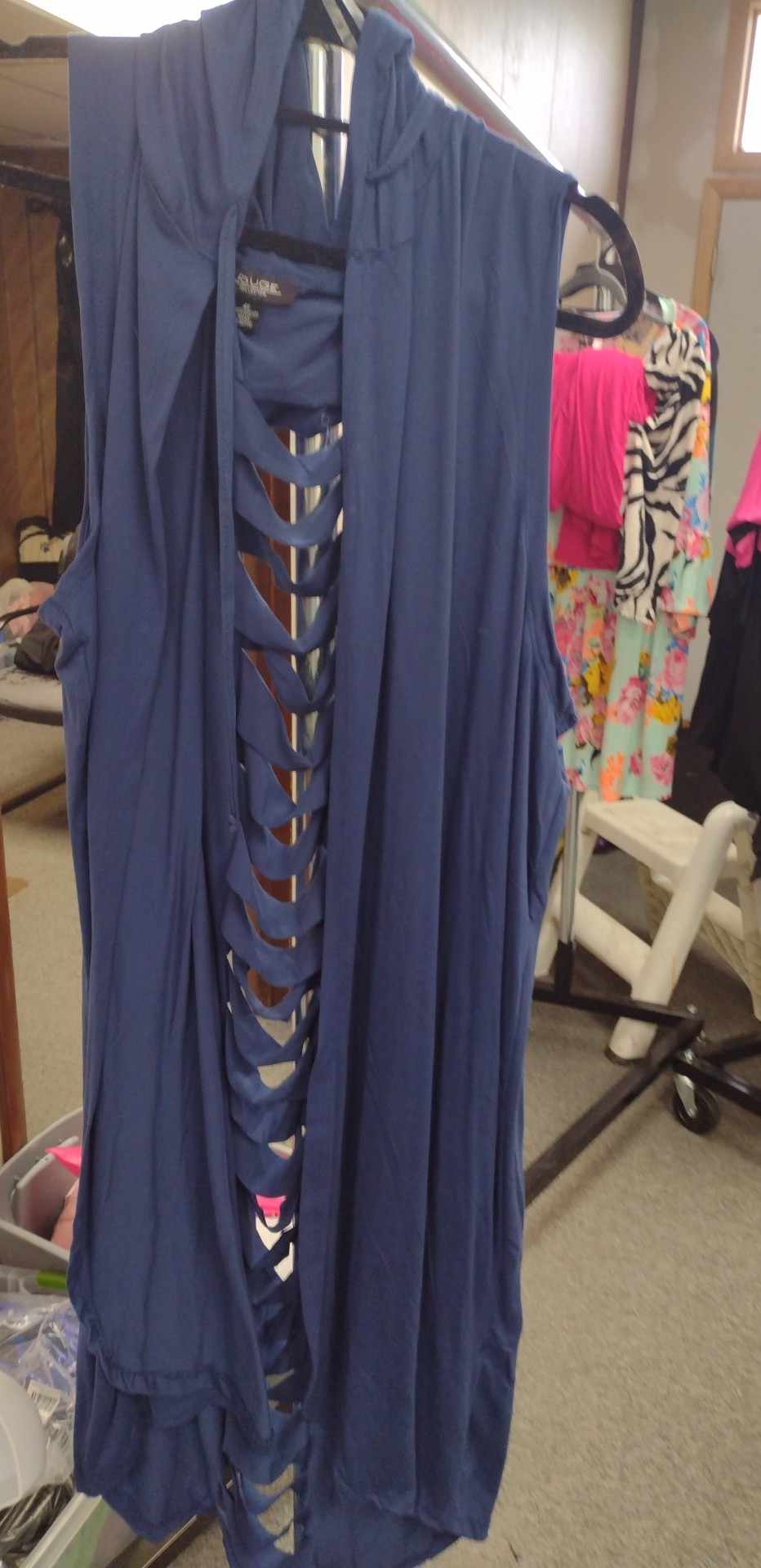 PSFU Navy Blue Shirt Top w White Lattice Sleeves