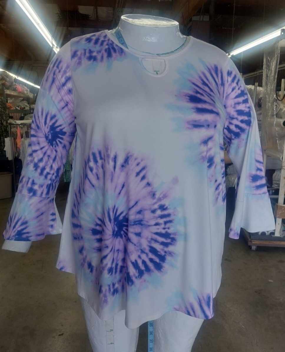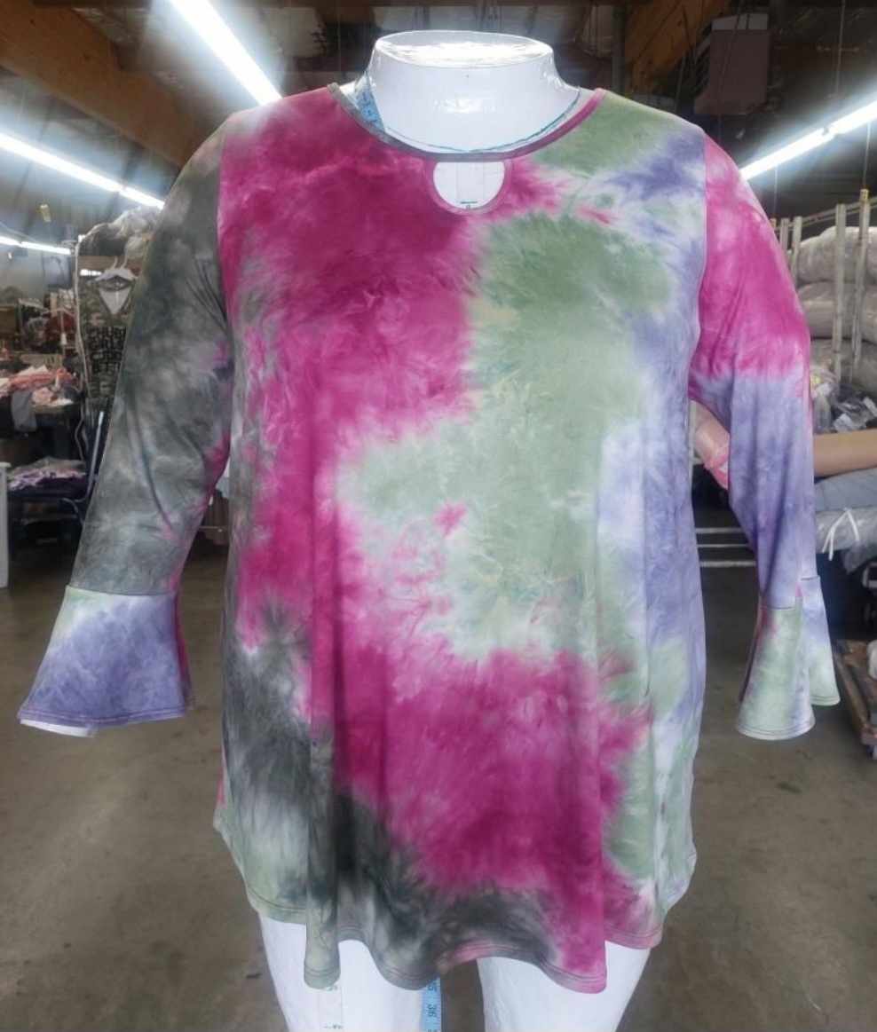 PSFU Pink Green Purple Tie Dye Shirt Top w Keyhole Neckline Detail