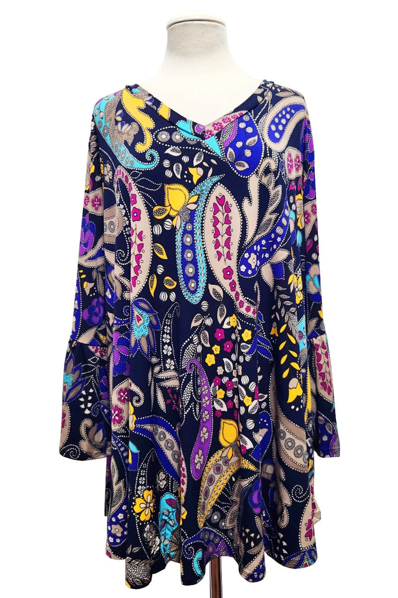 Dark Navy Yellow Teal Paisley Print Shirt Top