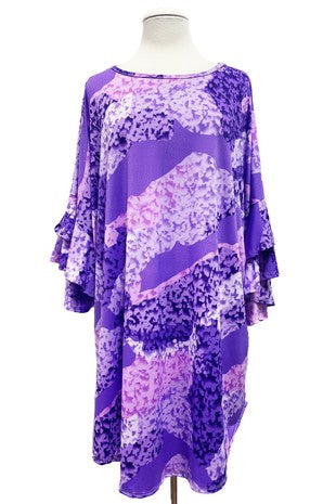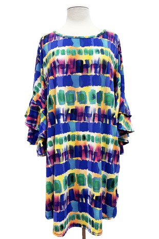 Multi Color Multi Print Top w Double Ruffle Sleeves