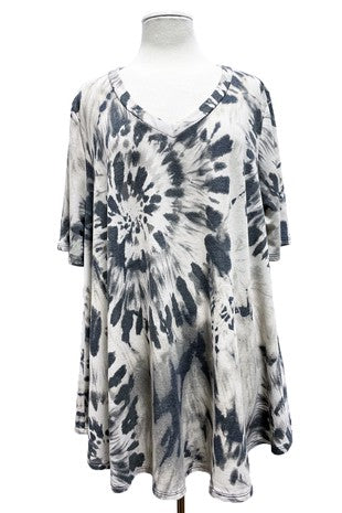Gray V Neck Tie Dye Shirt Top