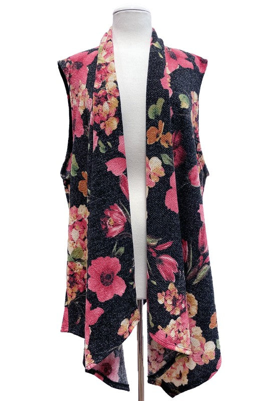 Flower Floral Print Open Front Sweater Vest Cardigan
