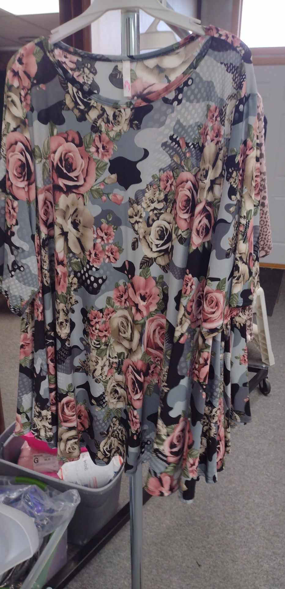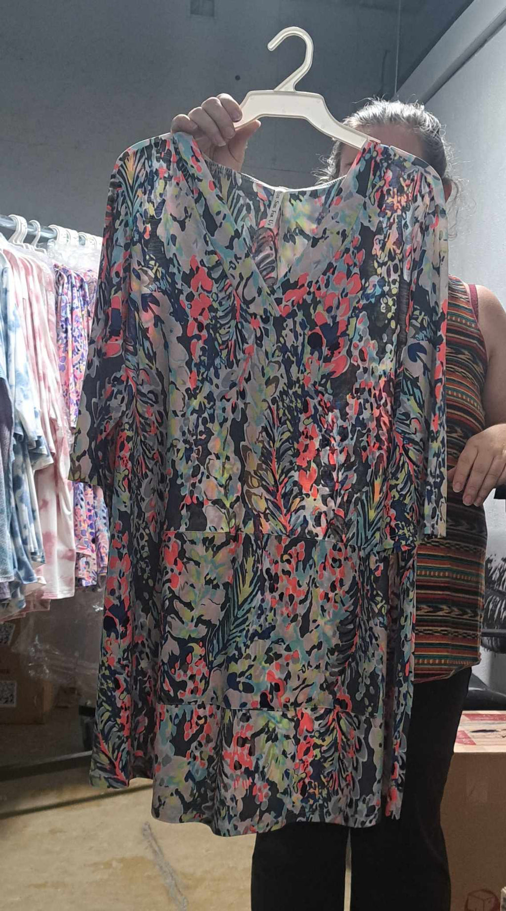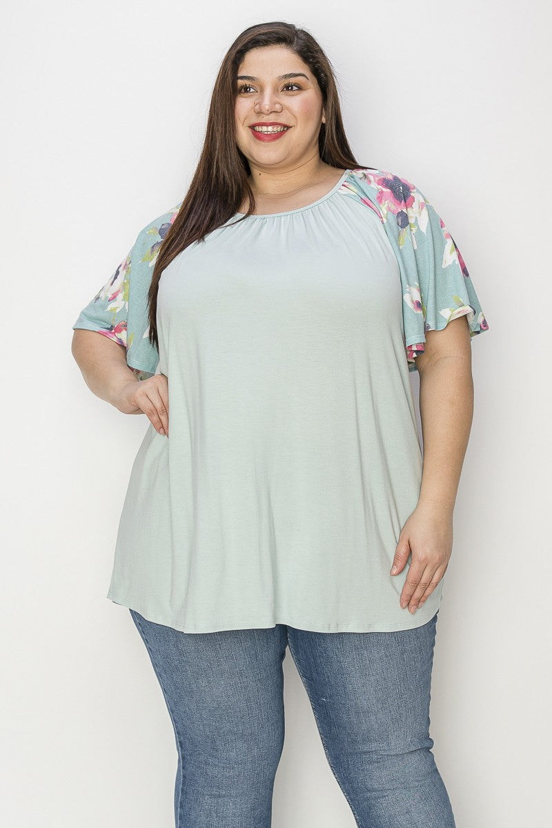 Mint Shirred Contrast Floral Sleeves Tunic Top Shirt