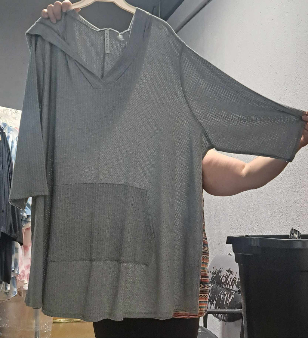 PSFU Gray Waffle Weave Stretchy Hoodie
