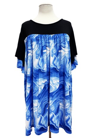 Black Blue Tie Dye Shirt Top w Ruffle Sleeves