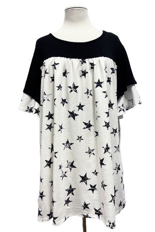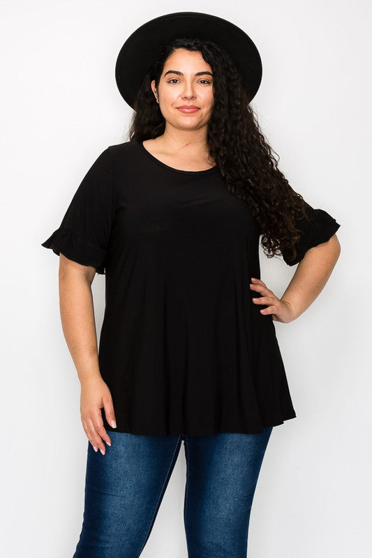 PSFU Solid Black Shirt Top w Ruffle Sleeve