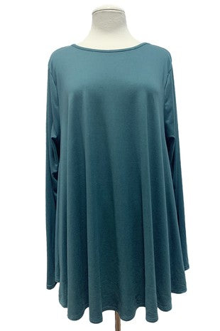 Dark Teal Solid Stretchy Long Sleeve Shirt Top