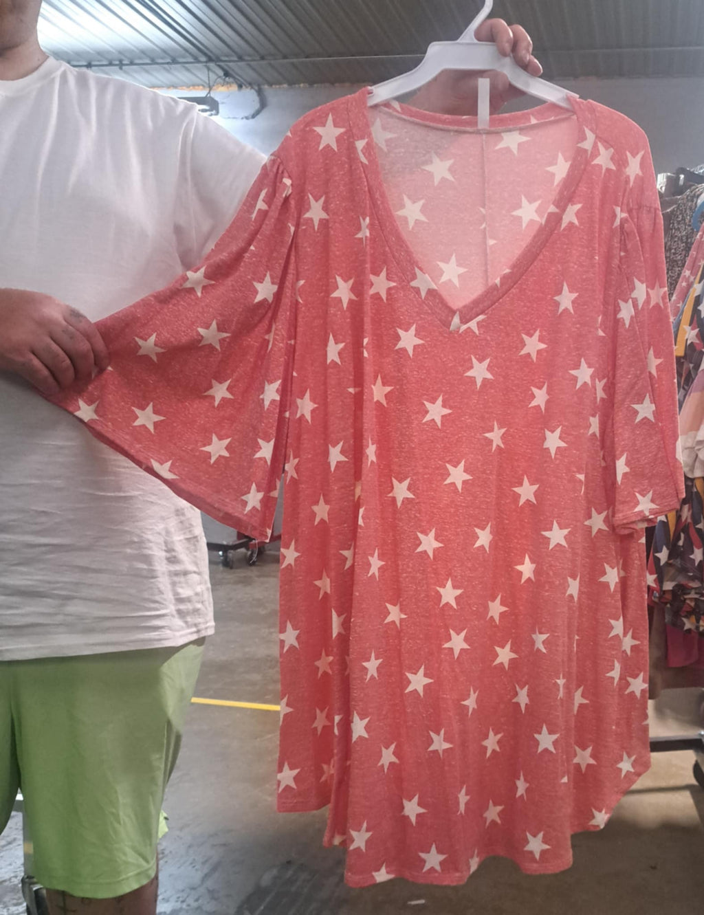 Hearthered Red and White Star Shirt Top Wide Sleeves
