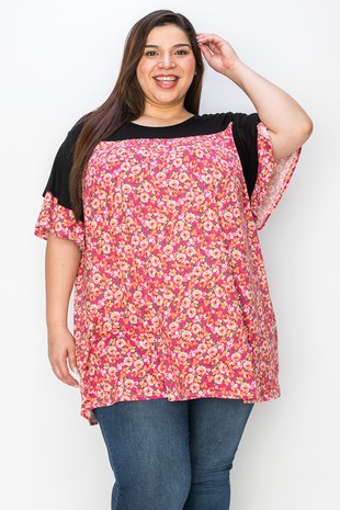 Black Red Pink Floral Bottom Shirt Top Tunic