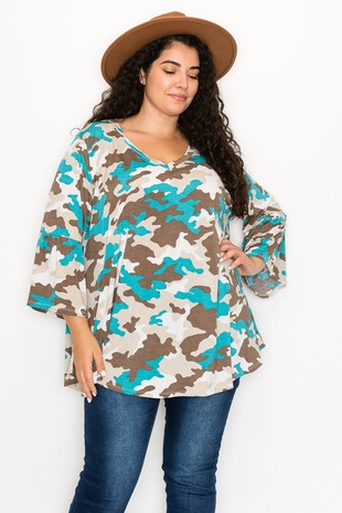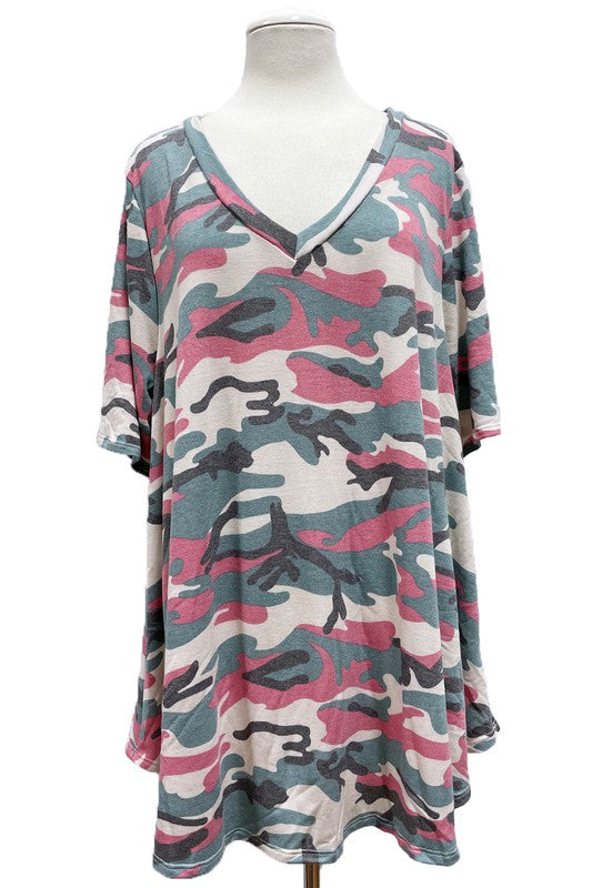 Gray Pink Tie Dye Top w V Neck and Wide Sleeves