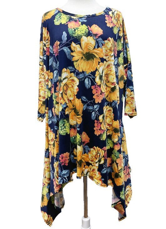 PSFU Blue Floral Shirt Top w Horseshoe Neckline