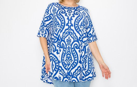 Gorgeous Blue & White Medallion Top