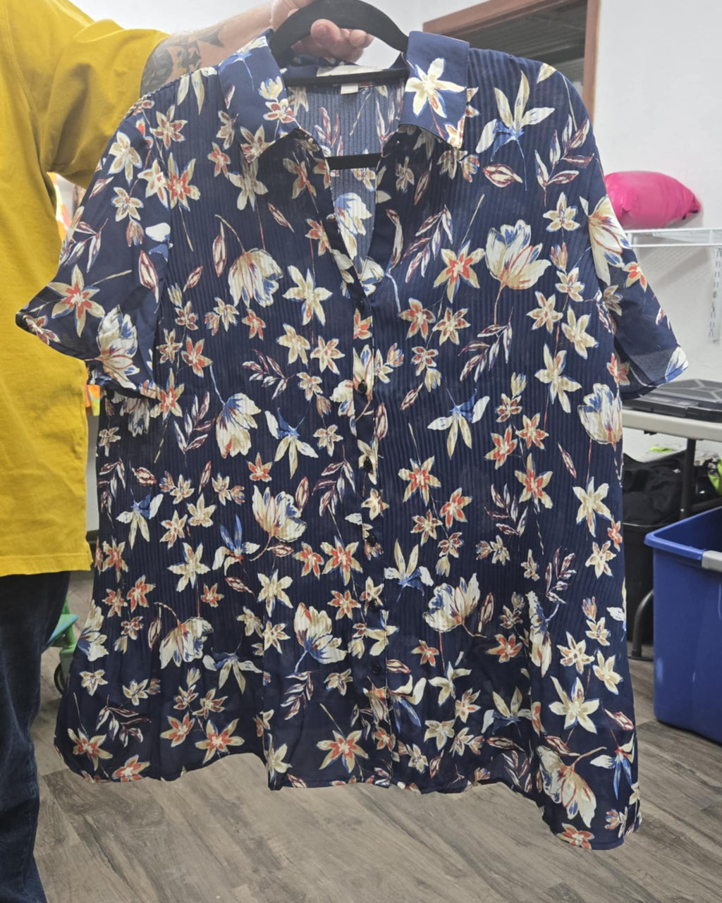 PSFU Navy Shirt Top with Navy White Floral Sleeves