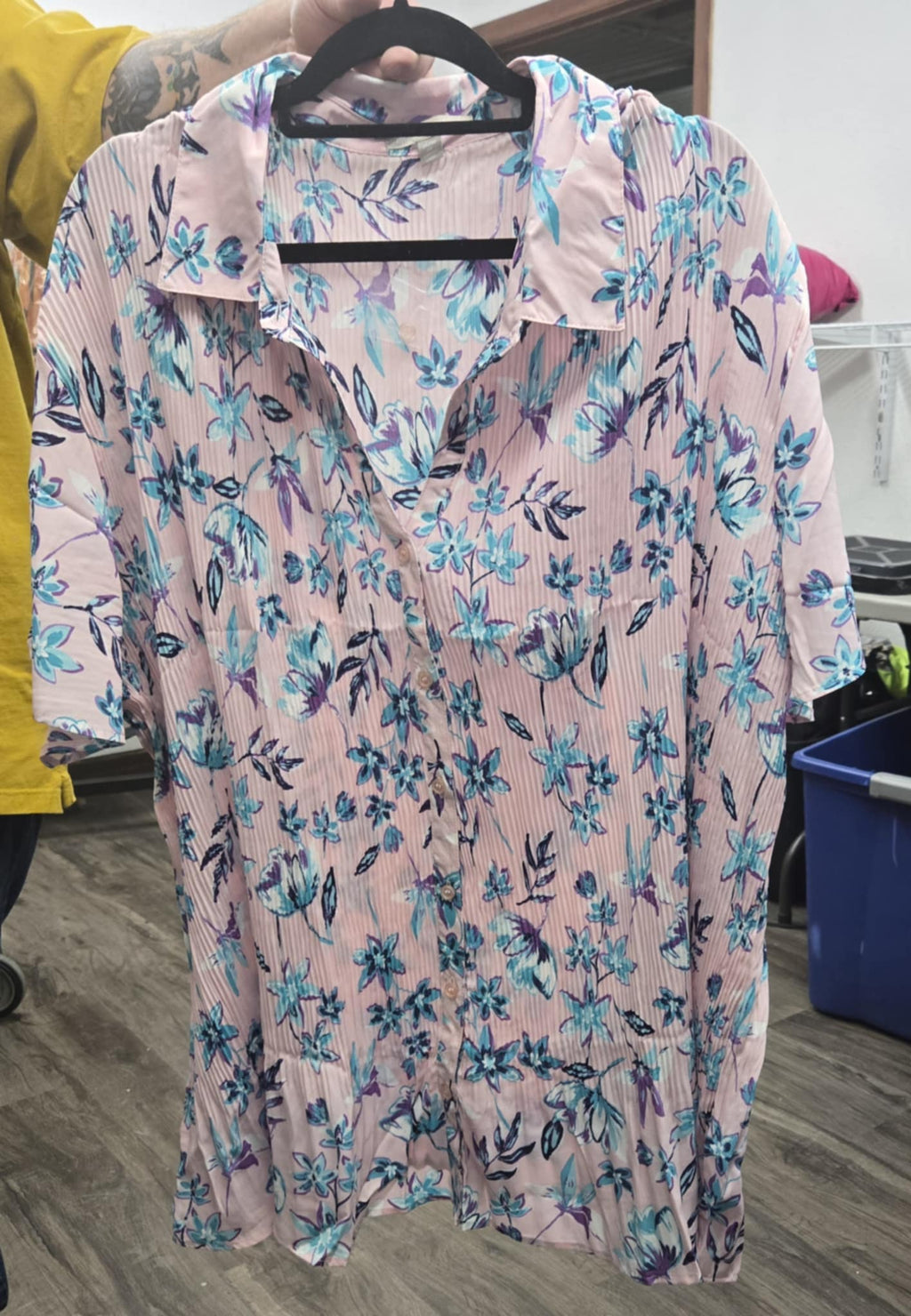 Pink Floral Tiered Shirt Top Bubble Sleeves