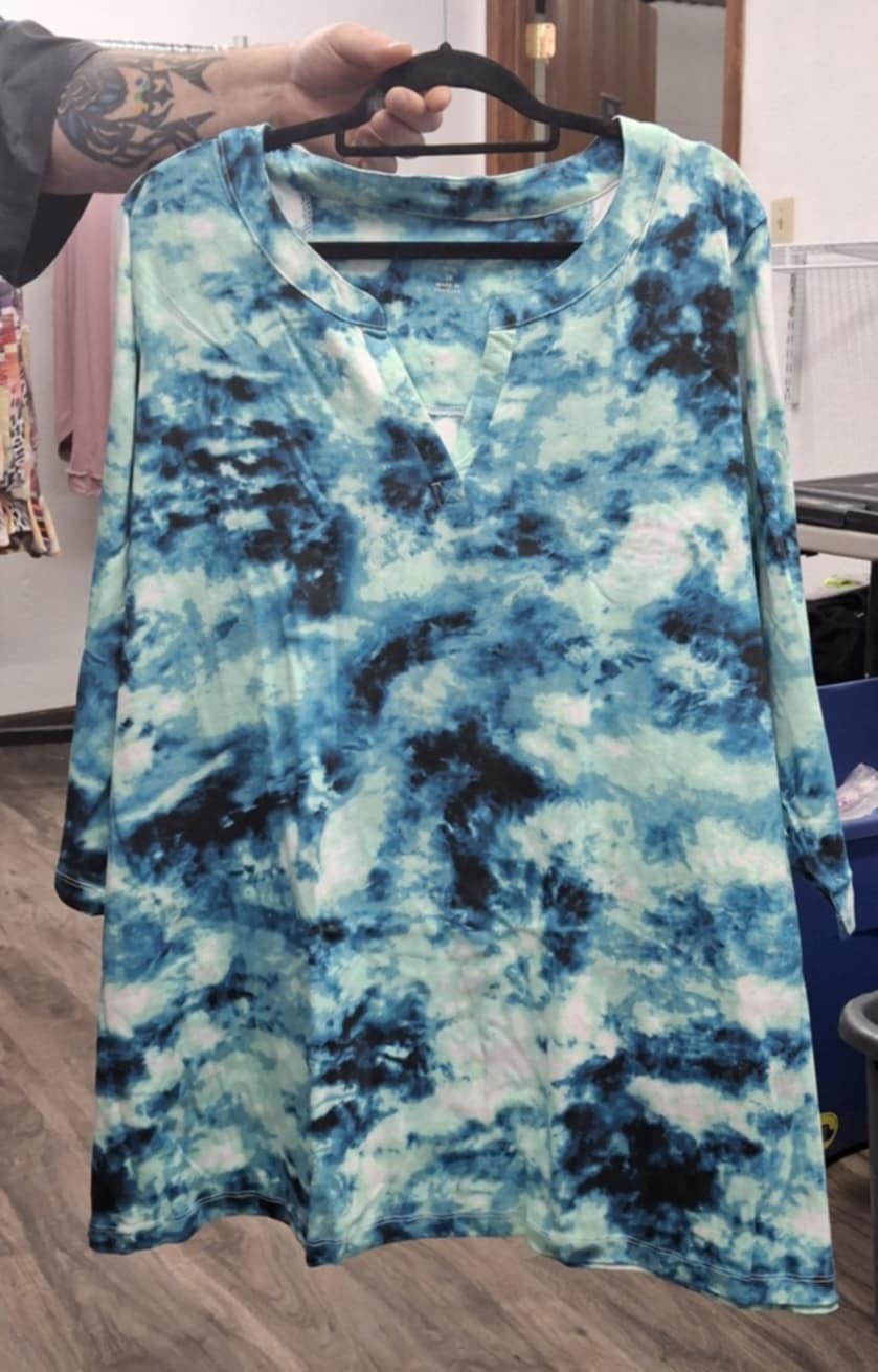 Gorgeous Navy Blue Green Tiered Shirt Top Tunic