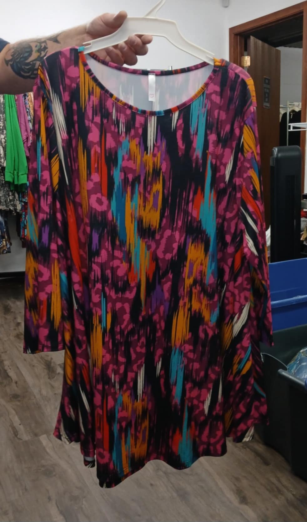 Pink Red Blue Green Swirl Sharkbite Shirt Top