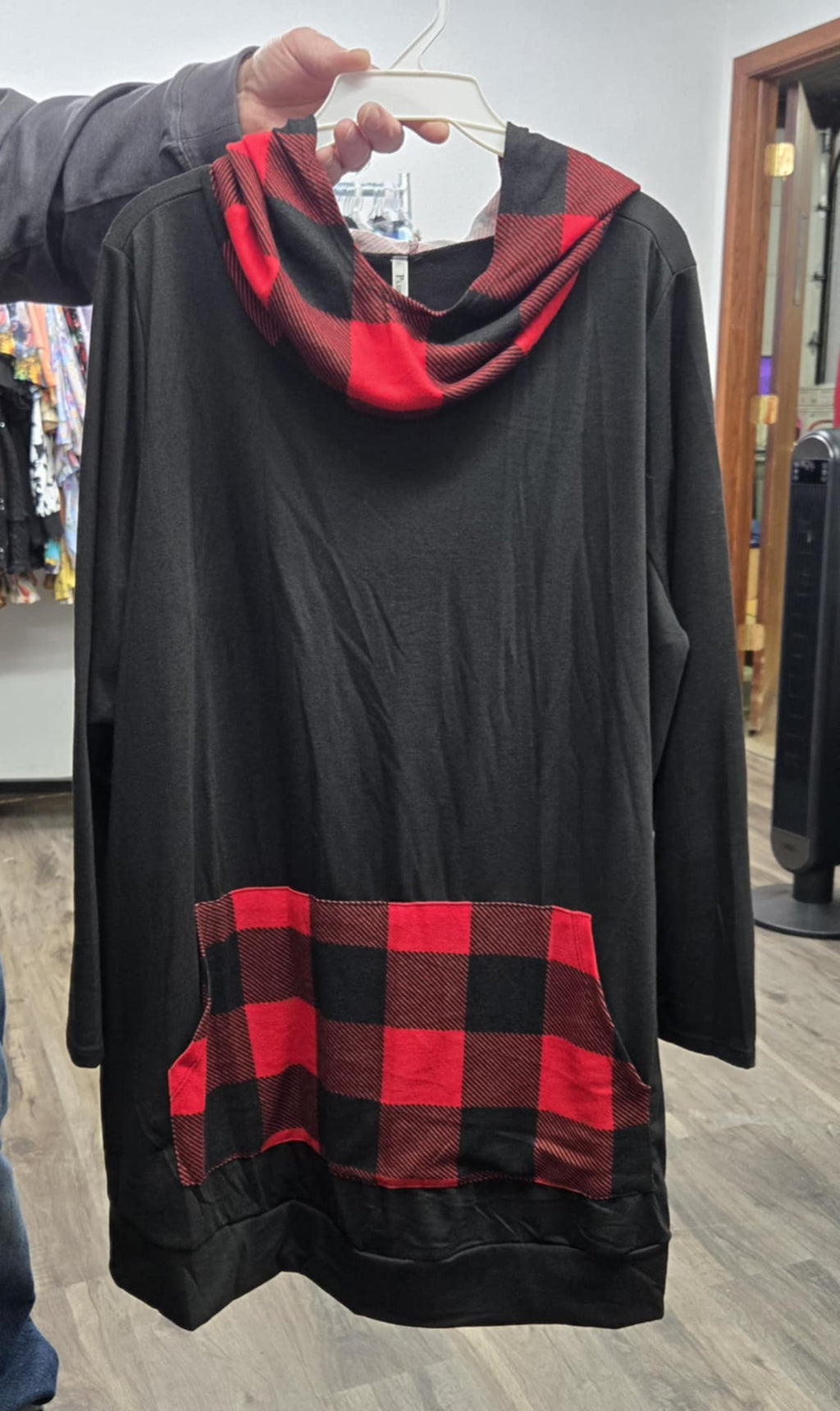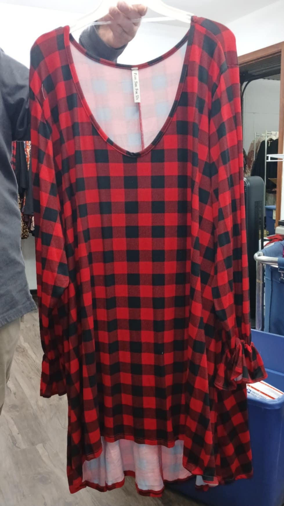 PSFU Red Black Plaid Hi Lo Shirt Top Tunic