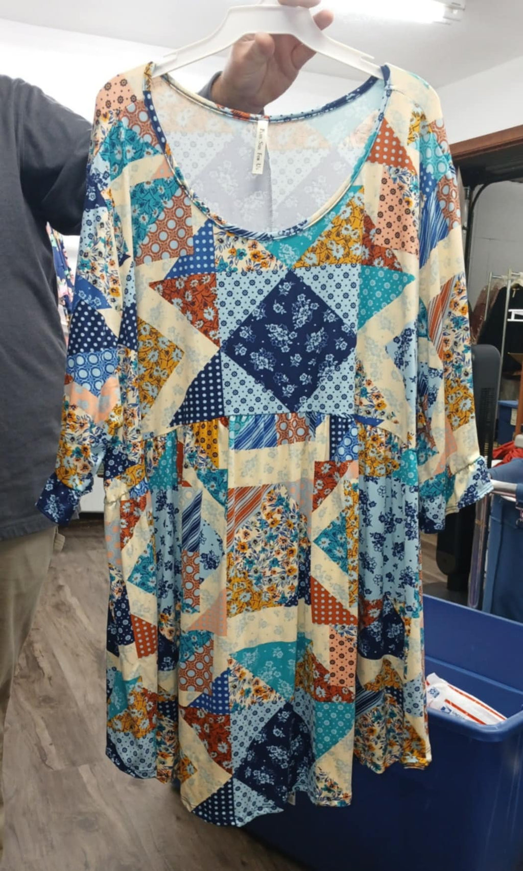 Orange Yellow Floral Patchwork Shirred Shirt Top Tunic