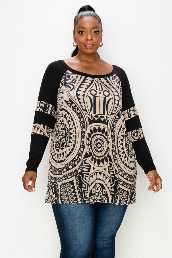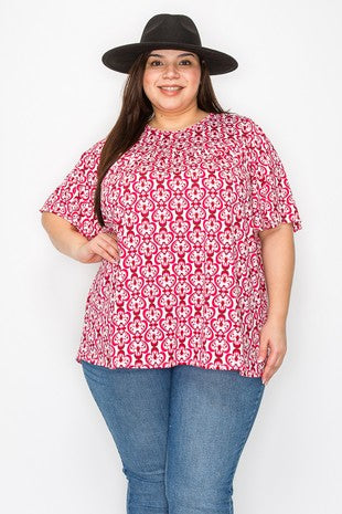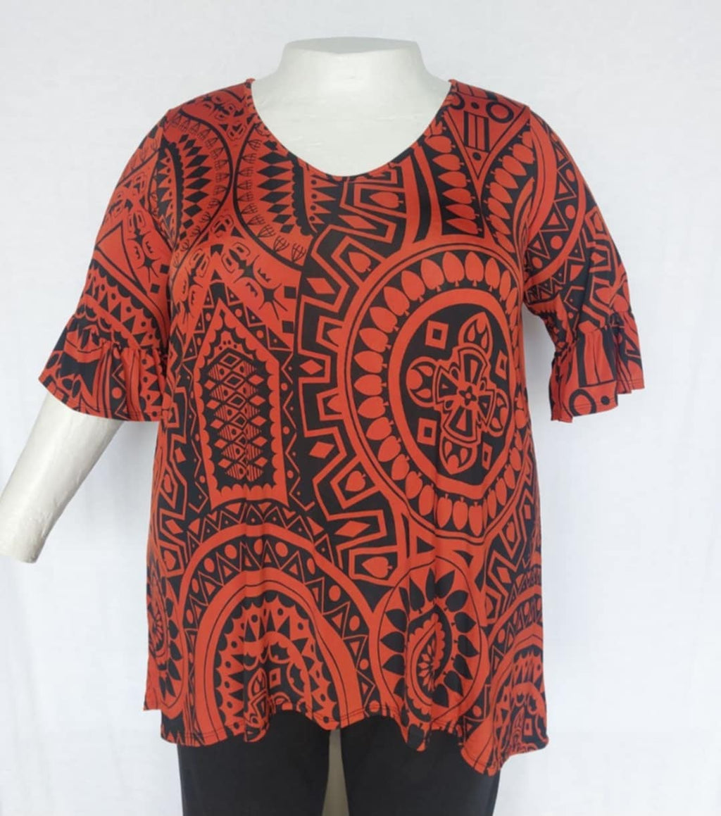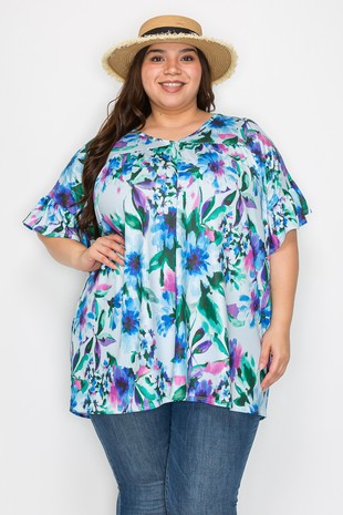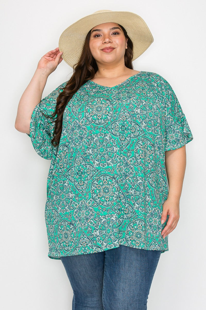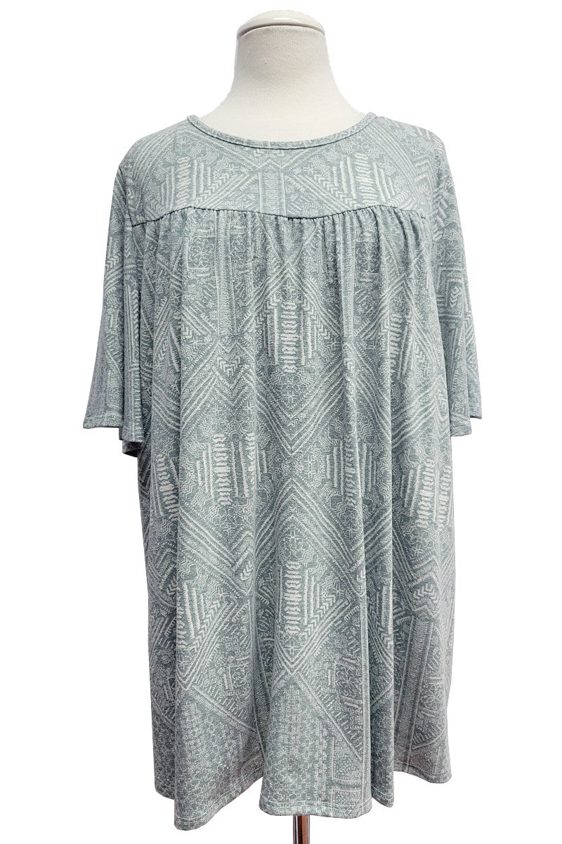 Dusty Light teal Shirred Multi Print Shirt Top Tunic