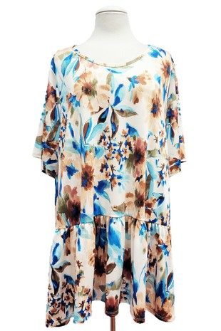 Green Shirt Top w Tan Beigey Floral Pattern Tunic