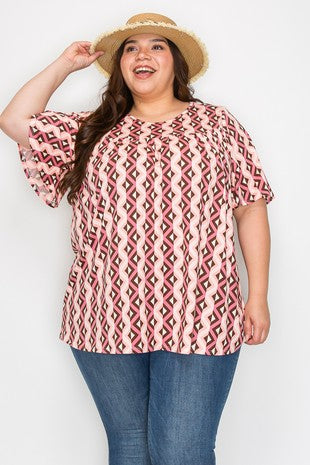 Pink Preppy Shirred Upper Diamondy Shirt Top