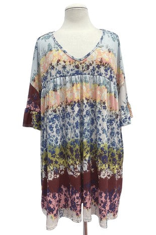 Blue Green Brown Stripe Floral Shirt Top V Neck