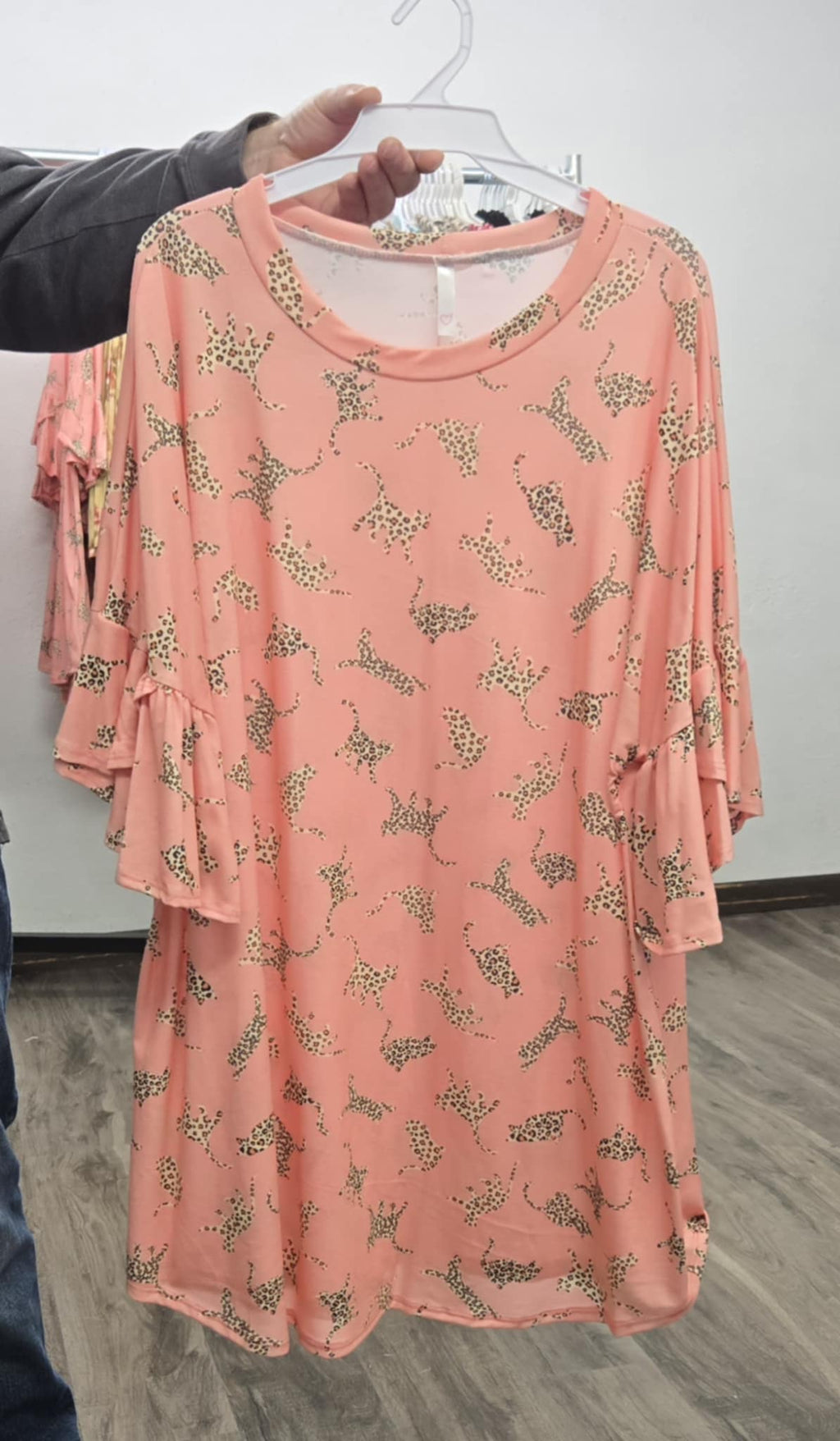 PSFU Black Shirt Top with Stripes and Leopard Sleeves