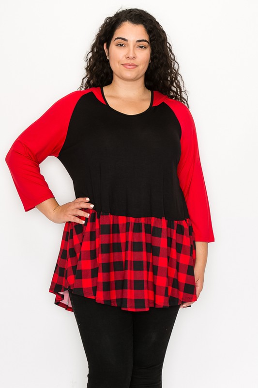 So Soft PSFU Pink Plaid Bubble Sleeve Top Shirt