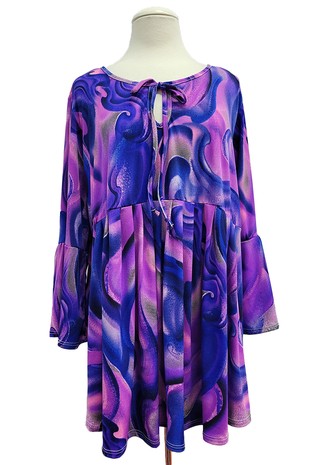 Purple Blue Swirl Tie Dye Shirt Top w Tie Neck