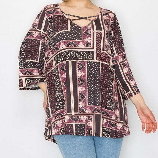 Purple Magenta Tie Dye X Neck Shirt Top Tunic