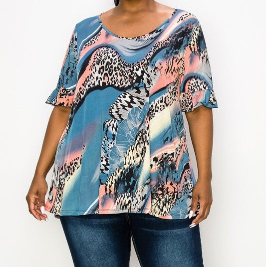 PSFU Pink Shirt Top w Cute Floral Sleeves