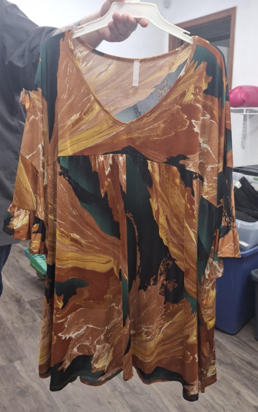 PSFU Gray Beige Leopard Shirt Top Strappy Neckline
