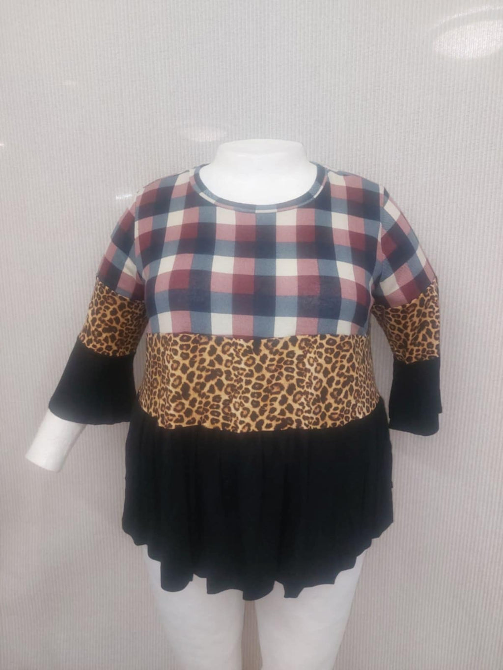 PSFU Navy Burgundy Plaid Leopard Black Colorblock Shirt Top