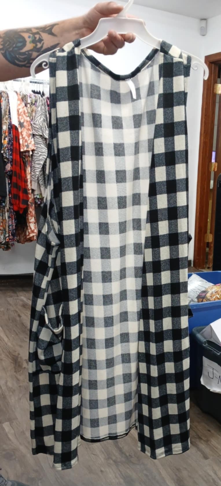 Black & White Plaid Open Front Vest w Pockets