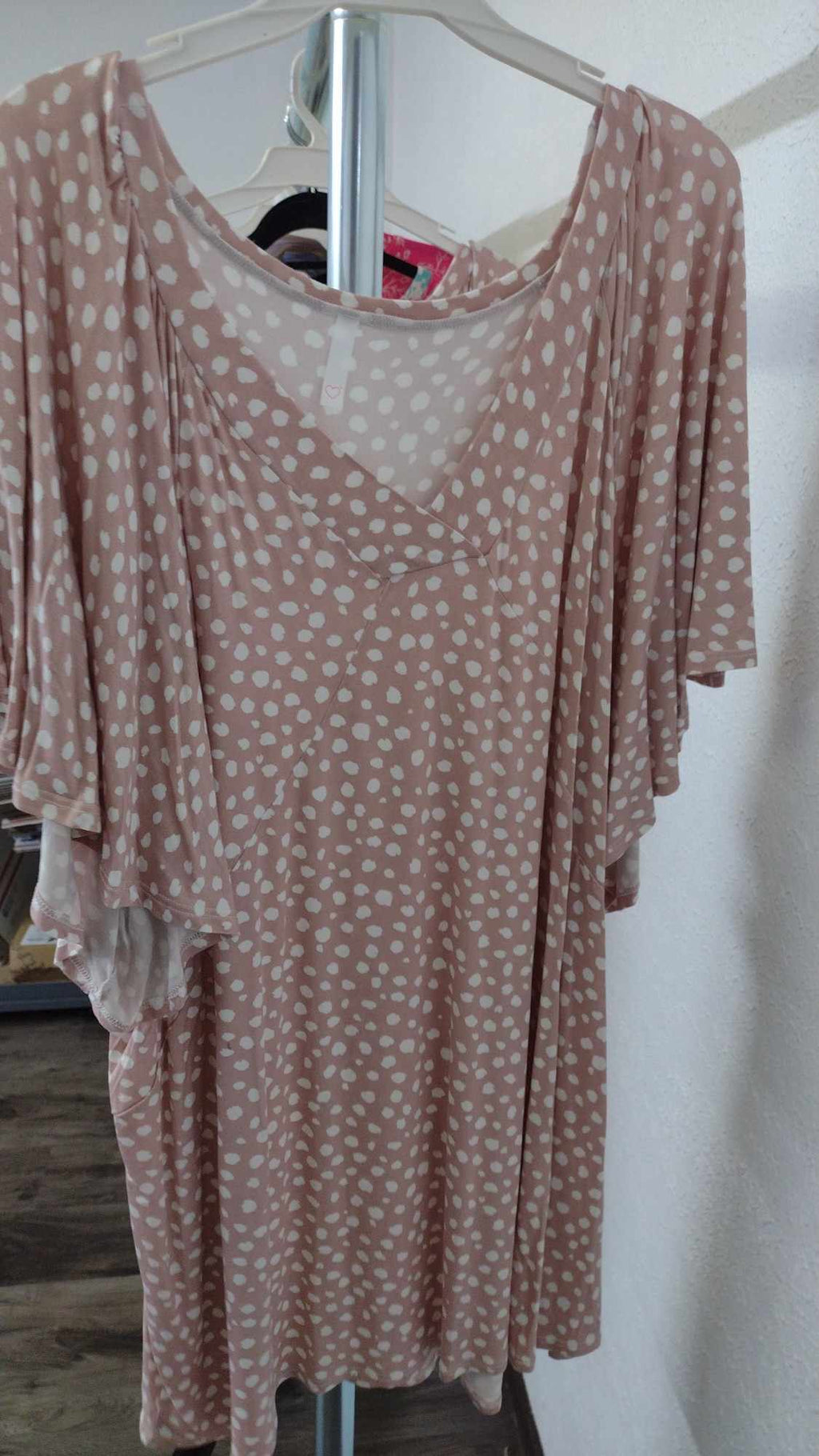 Blush Pink White Polka Dot V Neck Shirt Top