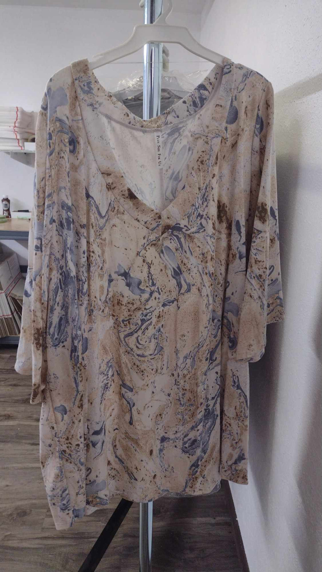 PSFU Blue Brown Swirl Watercolor Shirt Top
