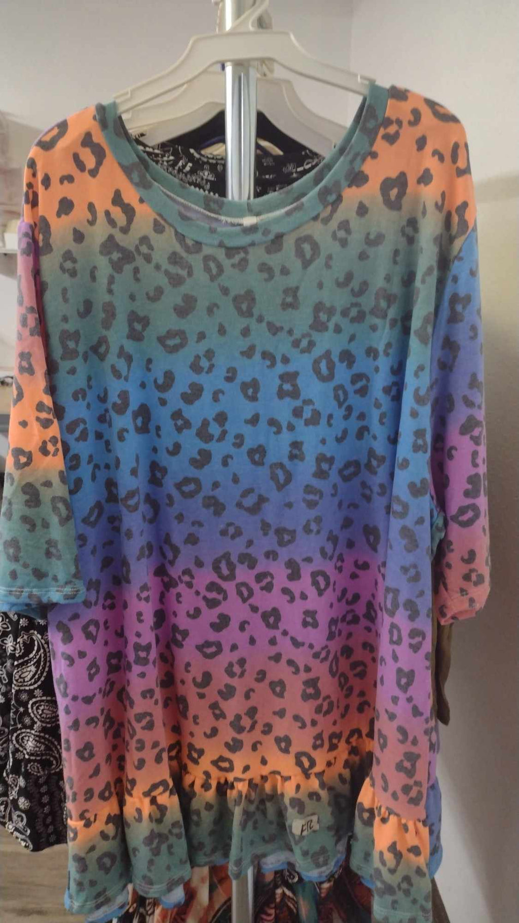 Rainbow Leopard Shirt Top Tunic w Ruffle Bottom