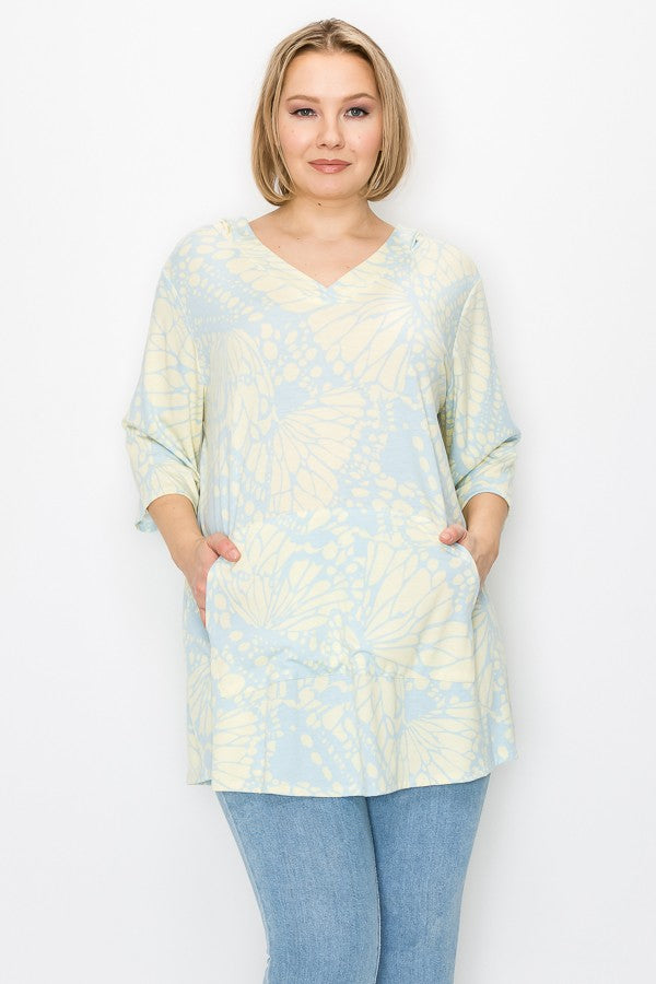 PSFU Blue Yellow Butterfly - Esque Hooded Shirt Top Hoodie