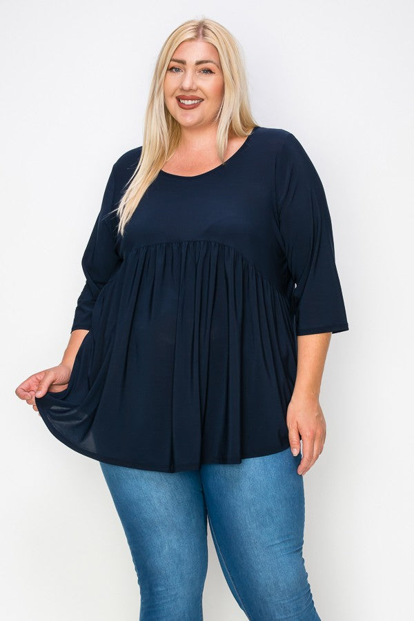 PSFU Dark Navy Blue Babydoll Shirt Top