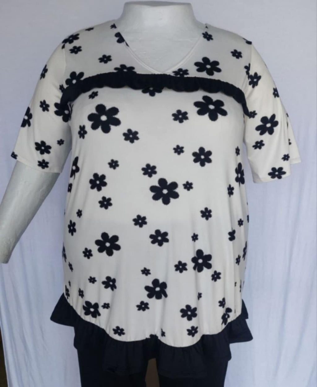 PSFU White & Black Floral Shirt Top