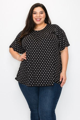 Black Shirred Polka Dot Shirt Top