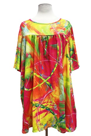 Pink Yellow Green Orange Shirred Tie Dye Like Shirt Top