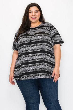 Black White Gray Stripe Graphic Shirt Top